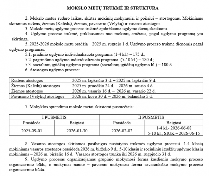 Mokykloje teikiamos paslaugos
